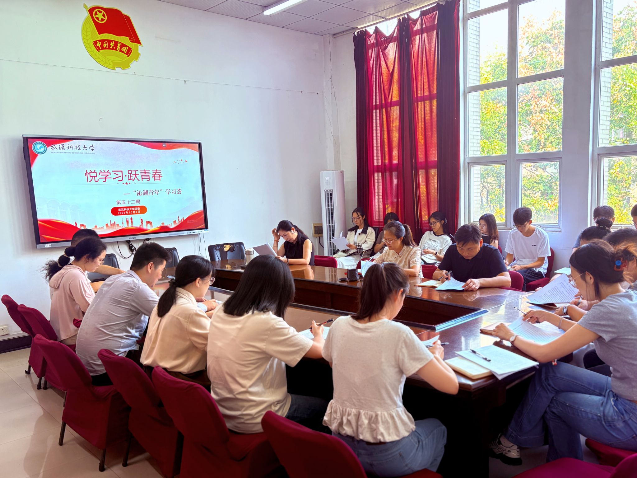2025年10月9日下午,我校团委青年团干围绕“悦学习·跃青春”主题在黄家湖校区青春驿站307会议室开展了第五十二期“沁湖青年学习荟”系列学习活动。学习荟由校团委办公室主任周习海领学,学院团干代表人工智能与自动化学院团委书记胡黄兴、学生代表校研究生会主席团成员王璇和大学生科学技术协会副主席王梓涵参加本次学习。全体成员一同专题学习习近平总书记在庆祝中华人民共和国成立76周年招待会上的讲话、习近平总书记给天津大学全体师生的回信(全文)和《求是》杂志发表习近平总书记重要文章《中华民族共同体的形成和发展是人心所向、大势所趋、历史必然》等内容。