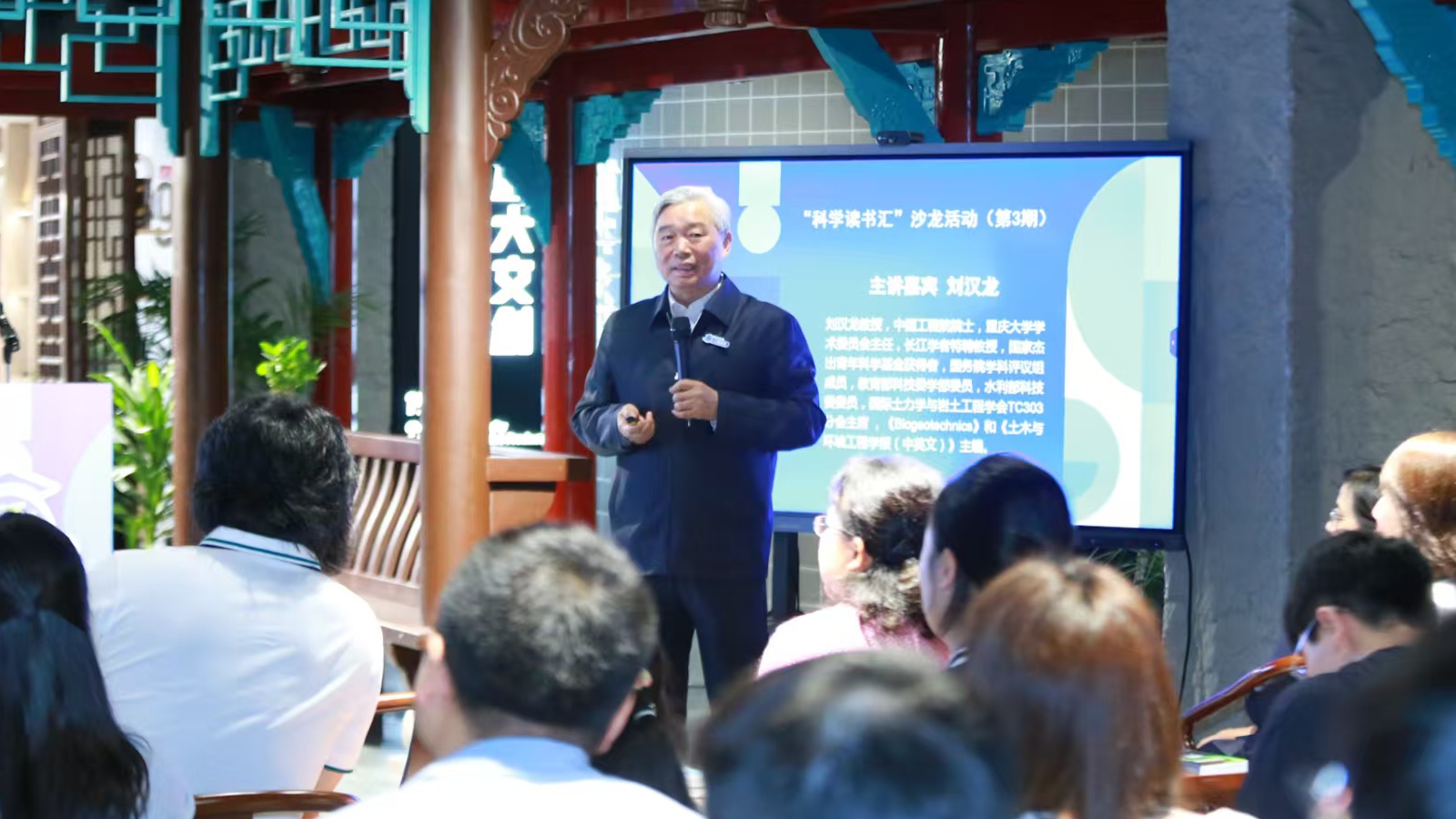 4月24日,重庆大学举行“科学读书汇”第3期沙龙活动,中国工程院院士刘汉龙教授应邀担任主讲嘉宾。来自市级机关、文博单位、大中小学的50余名嘉宾参与沙龙活动。