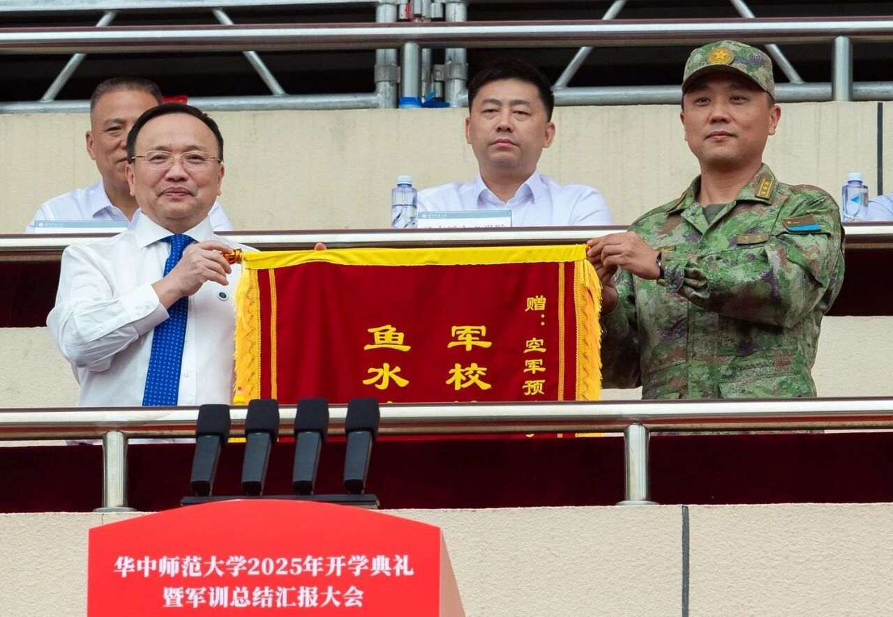 9月21日,我校2025年开学典礼暨军训总结汇报大会在佑铭体育场举行。中国人民解放军空军预警学院副院长代明,三大队大队长邓刚,校党委书记夏立新,校长彭双阶,校党委副书记查道林,副校长刘宏达、刘三女牙、吴丹出席。校党委副书记陈迪明主持典礼。